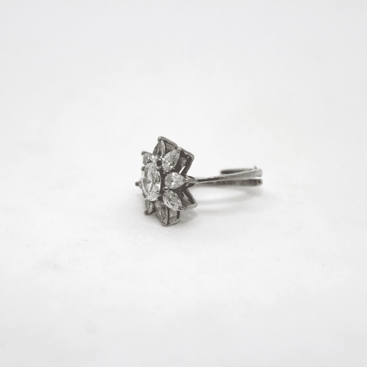 Blumenring aus rhodiniertem Silber mit Zirkonen
