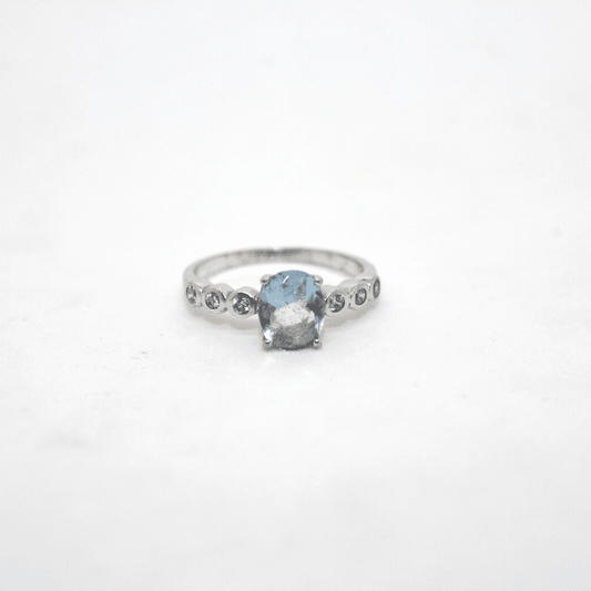 Ring aus 925 % rhodiniertem Silber mit hellblauem Quarz und Zirkonen