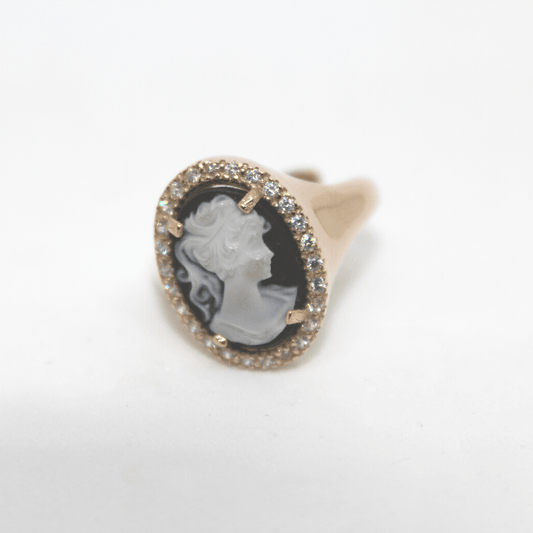 Ring mit Kamee aus 925 % Silber und Rosévergoldung