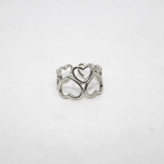 Ring mit fadenförmigen Herzen aus 925 % rhodiniertem Silber