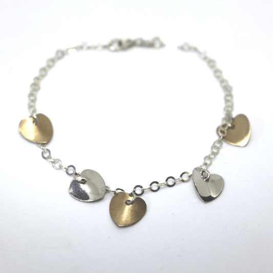 Armband mit rhodinierten und vergoldeten Silberherzen in Weiß